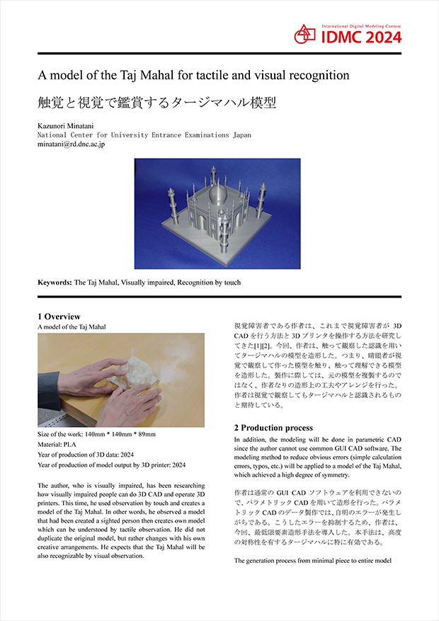 - The manuscript should begin with an overview, followed by a description of the concept and any special aspects. The text should include the name of the specific modeling software and 3D printer model used. You should then provide a specific and detailed description of the process and methods used to create the 3D data and model, as well as what was verified. If you used an external output service company, please describe the model name of the 3D printer and the reason for selecting that type. Keywords are not required